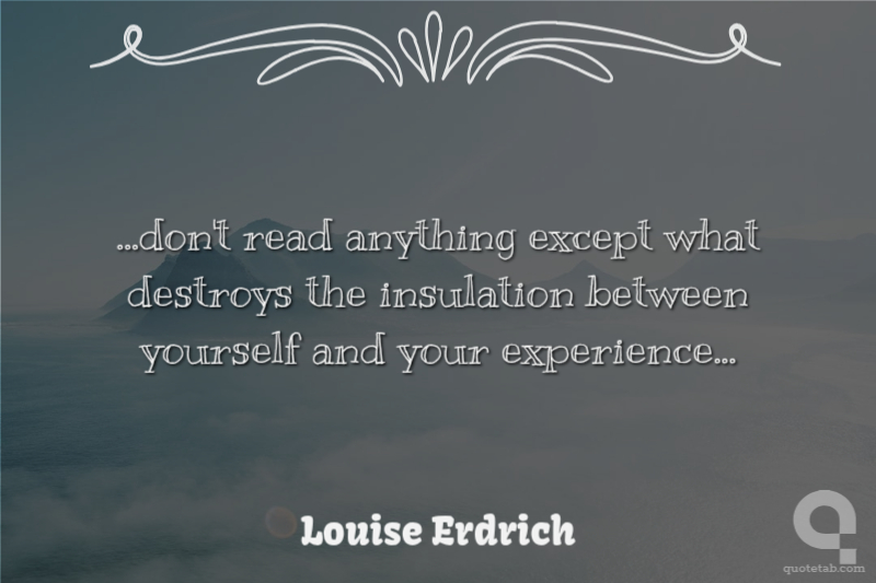 ...don't read anything except what destroys the insulation between yourself and your experience...