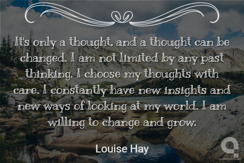 It's only a thought, and a thought can be changed. I am not limited by any past thinking. I choose my thoughts with care. I constantly have new insights and new ways of looking at my world. I am willing to change and grow.