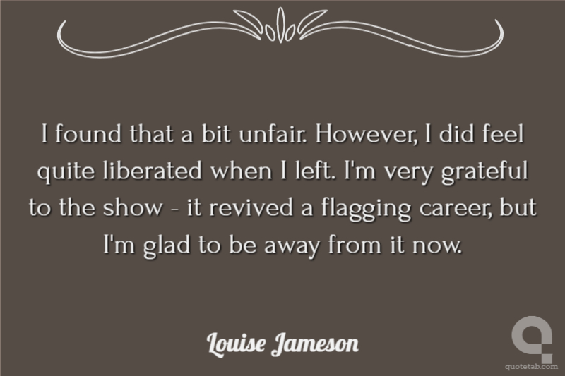I found that a bit unfair. However, I did feel quite liberated when I left. I'm very grateful to the show - it revived a flagging career, but I'm glad to be away from it now.