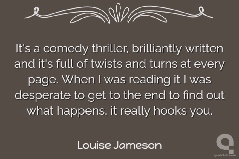 It's a comedy thriller, brilliantly written and it's full of twists and turns at every page. When I was reading it I was desperate to get to the end to find out what happens, it really hooks you.