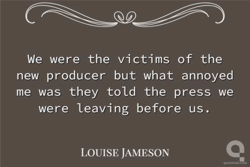 We were the victims of the new producer but what annoyed me was they told the press we were leaving before us.