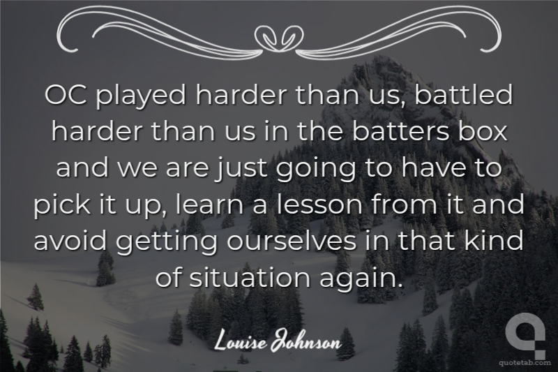 OC played harder than us, battled harder than us in the batters box and we are just going to have to pick it up, learn a lesson from it and avoid getting ourselves in that kind of situation again.