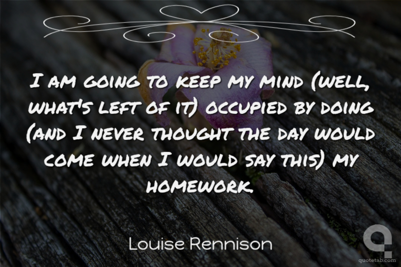 I am going to keep my mind (well, what's left of it) occupied by doing (and I never thought the day would come when I would say this) my homework.