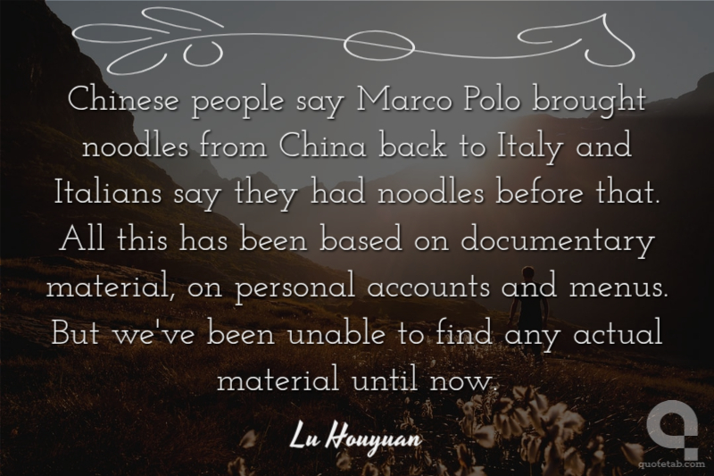 Chinese people say Marco Polo brought noodles from China back to Italy and Italians say they had noodles before that. All this has been based on documentary material, on personal accounts and menus. But we've been unable to find any actual material until now.