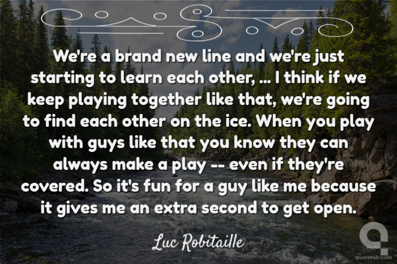 We're a brand new line and we're just starting to learn each other, ... I think if we keep playing together like that, we're going to find each other on the ice. When you play with guys like that you know they can always make a play -- even if they're covered. So it's fun for a guy like me because it gives me an extra second to get open.
