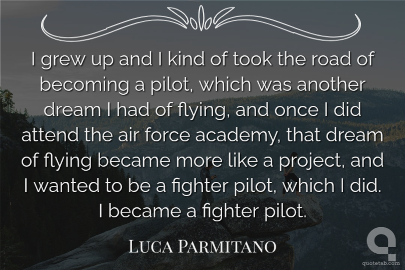 I grew up and I kind of took the road of becoming a pilot, which was another dream I had of flying, and once I did attend the air force academy, that dream of flying became more like a project, and I wanted to be a fighter pilot, which I did. I became a fighter pilot.