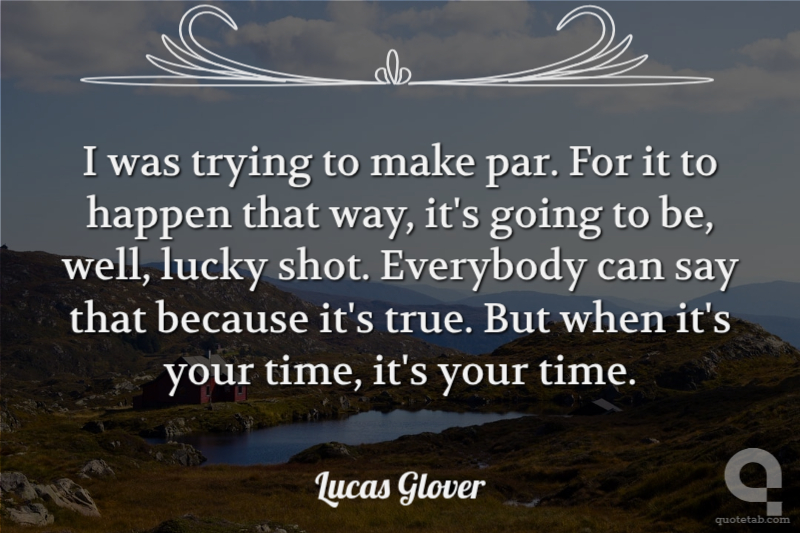 I was trying to make par. For it to happen that way, it's going to be, well, lucky shot. Everybody can say that because it's true. But when it's your time, it's your time.
