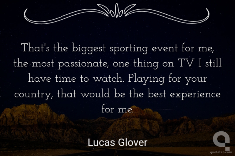 That's the biggest sporting event for me, the most passionate, one thing on TV I still have time to watch. Playing for your country, that would be the best experience for me.