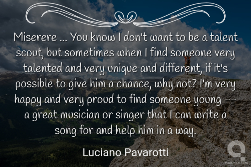 Miserere ... You know I don't want to be a talent scout, but sometimes when I find someone very talented and very unique and different, if it's possible to give him a chance, why not? I'm very happy and very proud to find someone young -- a great musician or singer that I can write a song for and help him in a way.