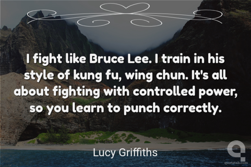 I fight like Bruce Lee. I train in his style of kung fu, wing chun. It's all about fighting with controlled power, so you learn to punch correctly.