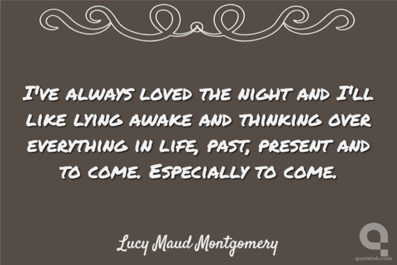I've always loved the night and I'll like lying awake and thinking over everything in life, past, present and to come. Especially to come.