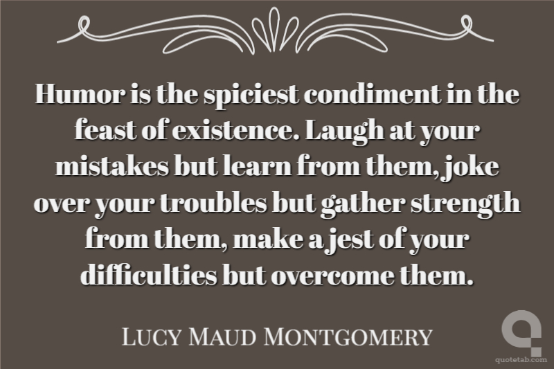 Humor is the spiciest condiment in the feast of existence. Laugh at your mistakes but learn from them, joke over your troubles but gather strength from them, make a jest of your difficulties but overcome them.