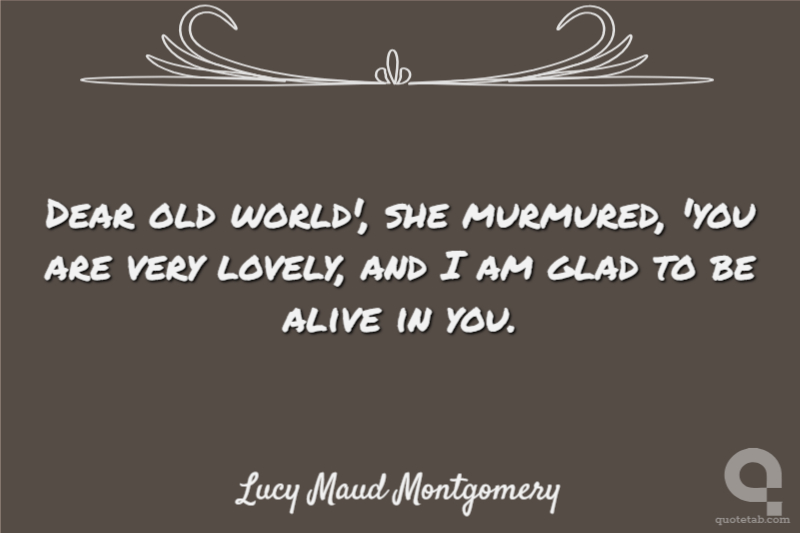 Dear old world', she murmured, 'you are very lovely, and I am glad to be alive in you.