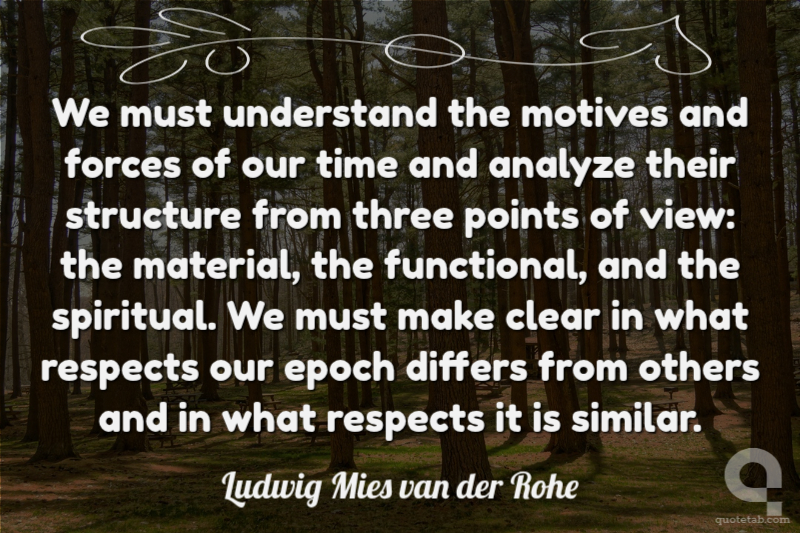 We must understand the motives and forces of our time and analyze their structure from three points of view: the material, the functional, and the spiritual. We must make clear in what respects our epoch differs from others and in what respects it is similar.