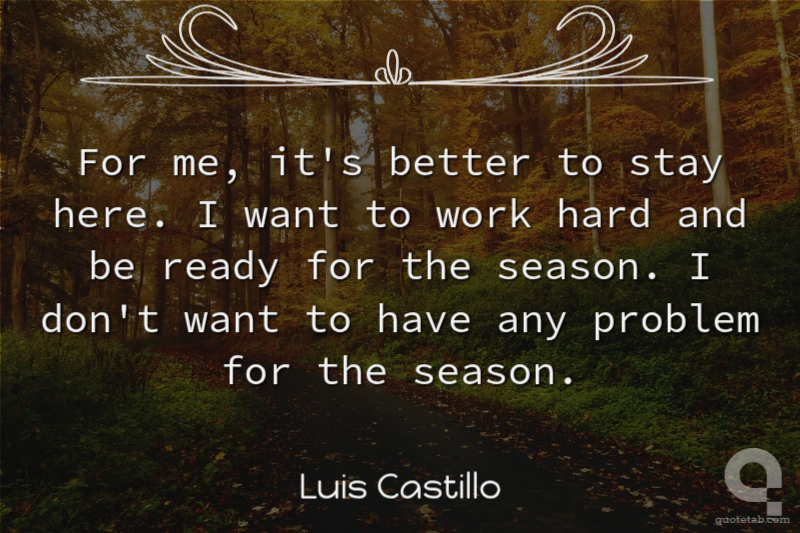 For me, it's better to stay here. I want to work hard and be ready for the season. I don't want to have any problem for the season.
