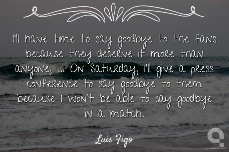 I'll have time to say goodbye to the fans because they deserve it more than anyone, ... On Saturday, I'll give a press conference to say goodbye to them because I won't be able to say goodbye in a match.