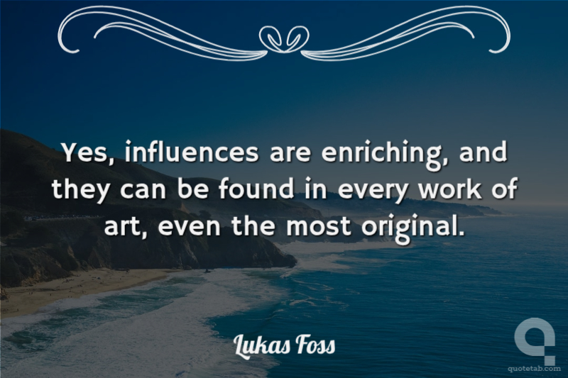 Yes, influences are enriching, and they can be found in every work of art, even the most original.