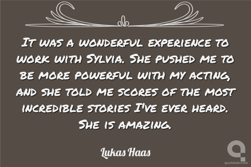 It was a wonderful experience to work with Sylvia. She pushed me to be more powerful with my acting, and she told me scores of the most incredible stories I've ever heard. She is amazing.