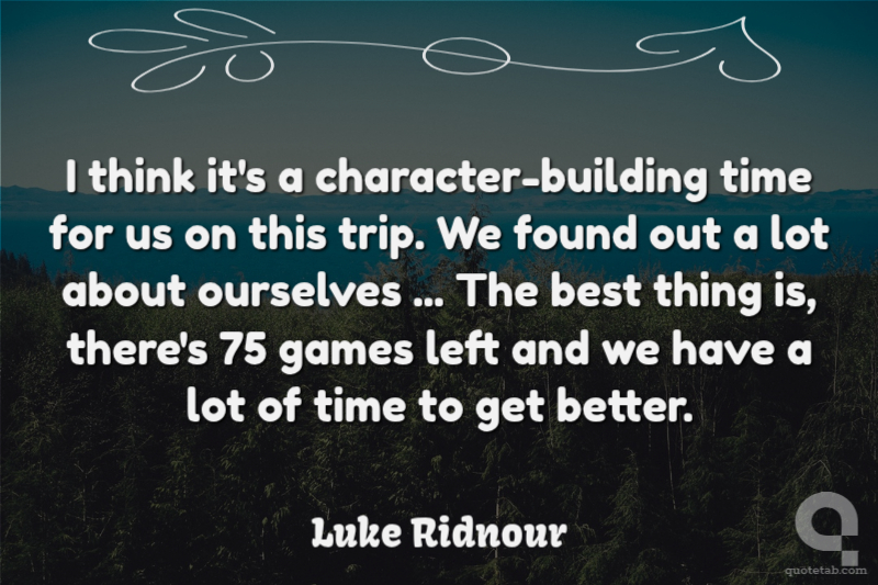 I think it's a character-building time for us on this trip. We found out a lot about ourselves ... The best thing is, there's 75 games left and we have a lot of time to get better.