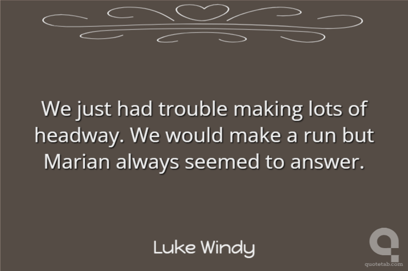 We just had trouble making lots of headway. We would make a run but Marian always seemed to answer.