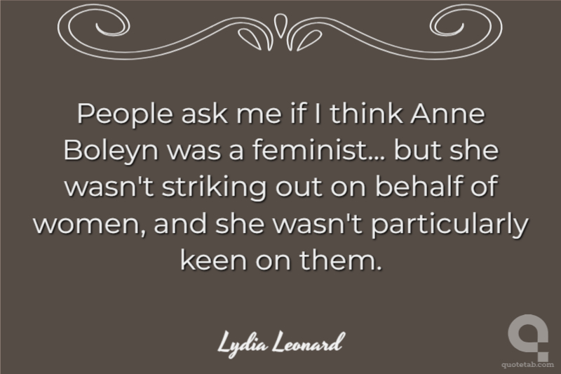 People ask me if I think Anne Boleyn was a feminist... but she wasn't striking out on behalf of women, and she wasn't particularly keen on them.