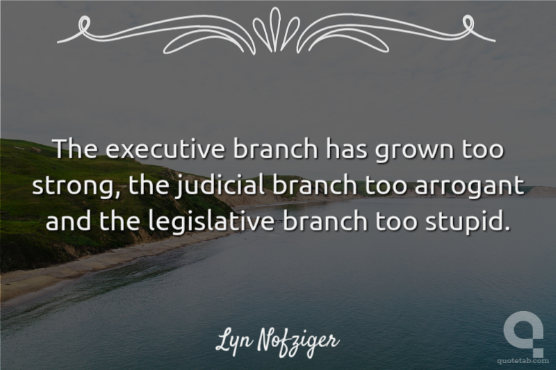 The executive branch has grown too strong, the judicial branch too arrogant and the legislative branch too stupid.