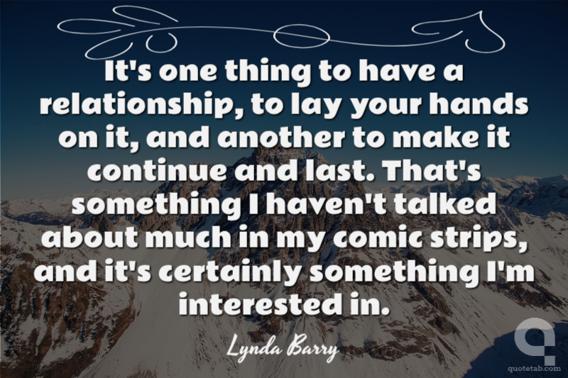 It's one thing to have a relationship, to lay your hands on it, and another to make it continue and last. That's something I haven't talked about much in my comic strips, and it's certainly something I'm interested in.
