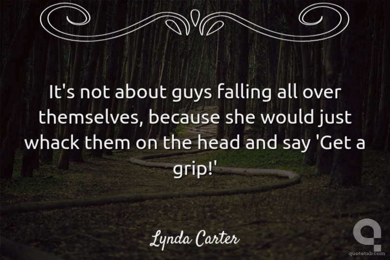 It's not about guys falling all over themselves, because she would just whack them on the head and say 'Get a grip!'