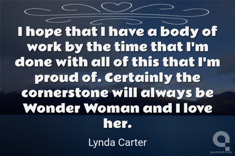 I hope that I have a body of work by the time that I'm done with all of this that I'm proud of. Certainly the cornerstone will always be Wonder Woman and I love her.
