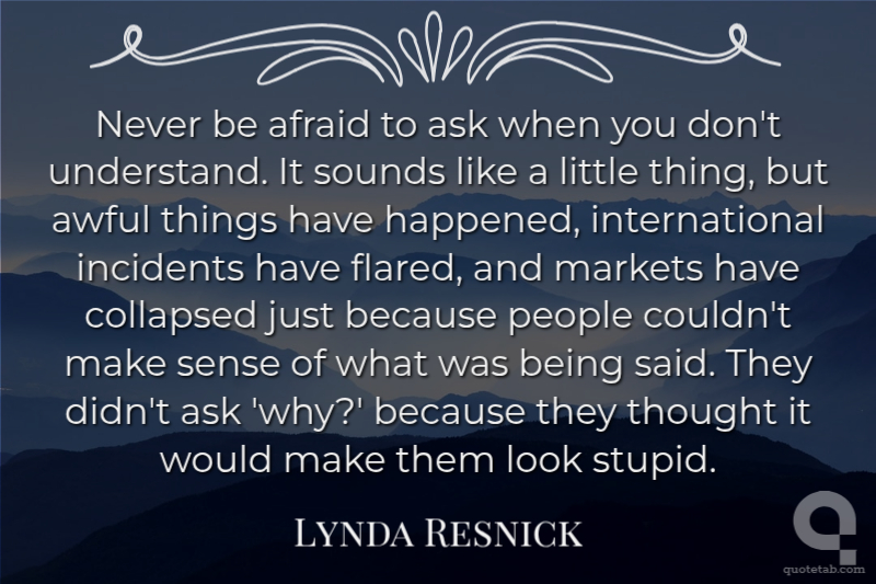 Never be afraid to ask when you don't understand. It sounds like a little thing, but awful things have happened, international incidents have flared, and markets have collapsed just because people couldn't make sense of what was being said. They didn't ask 'why?' because they thought it would make them look stupid.