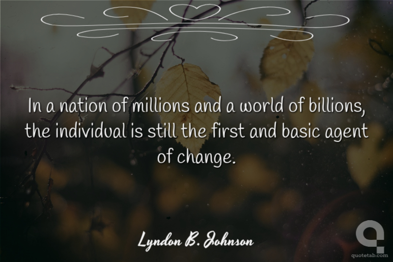 In a nation of millions and a world of billions, the individual is still the first and basic agent of change.