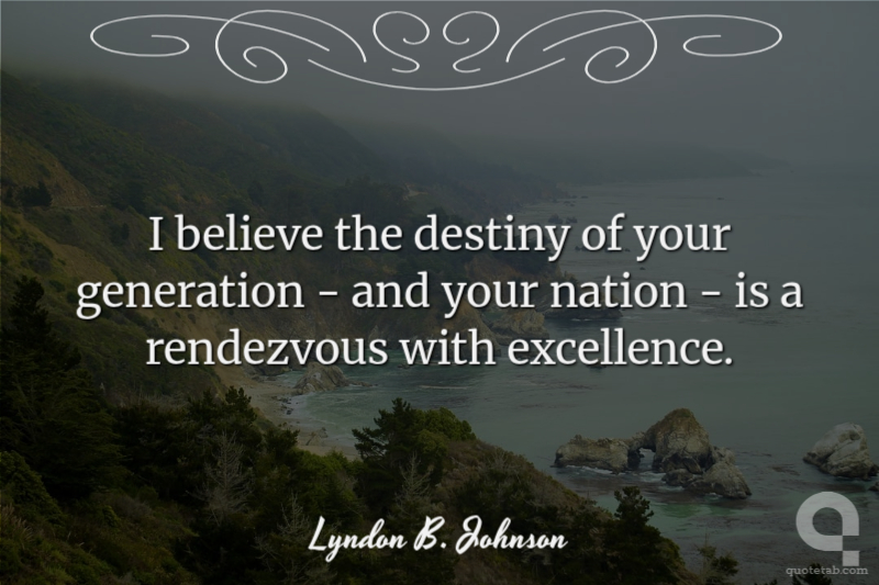 I believe the destiny of your generation - and your nation - is a rendezvous with excellence.