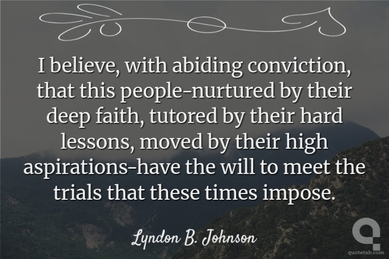 I believe, with abiding conviction, that this people-nurtured by their deep faith, tutored by their hard lessons, moved by their high aspirations-have the will to meet the trials that these times impose.