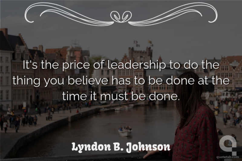 It's the price of leadership to do the thing you believe has to be done at the time it must be done.