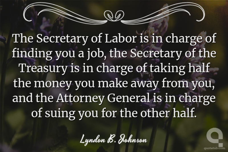 The Secretary of Labor is in charge of finding you a job, the Secretary of the Treasury is in charge of taking half the money you make away from you, and the Attorney General is in charge of suing you for the other half.