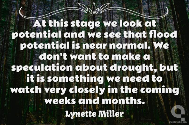 At this stage we look at potential and we see that flood potential is near normal. We don't want to make a speculation about drought, but it is something we need to watch very closely in the coming weeks and months.