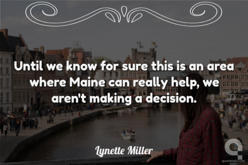 Until we know for sure this is an area where Maine can really help, we aren't making a decision.