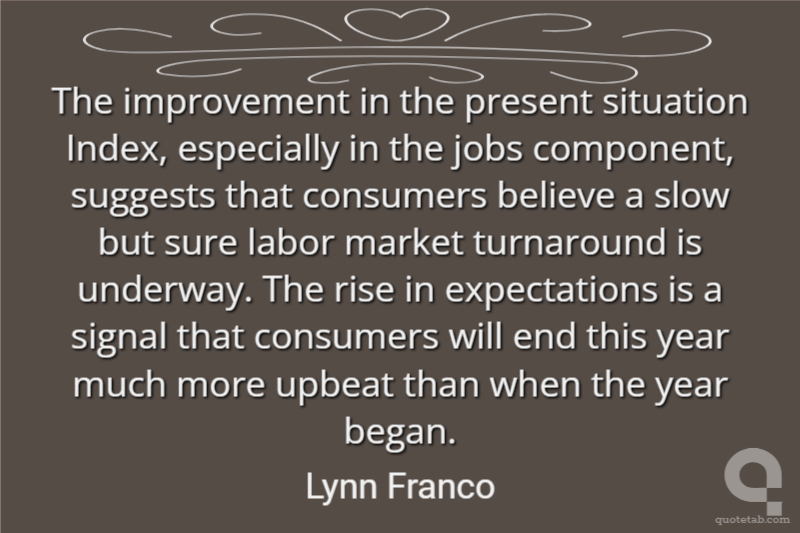 believe consumers improvement jobs labor market present rise signal situation slow sure turnaround upbeat year