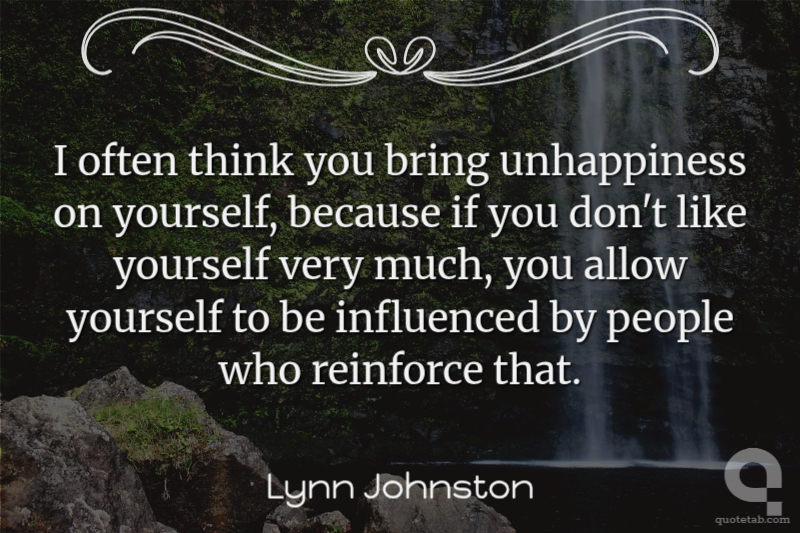 I often think you bring unhappiness on yourself, because if you don't like yourself very much, you allow yourself to be influenced by people who reinforce that.