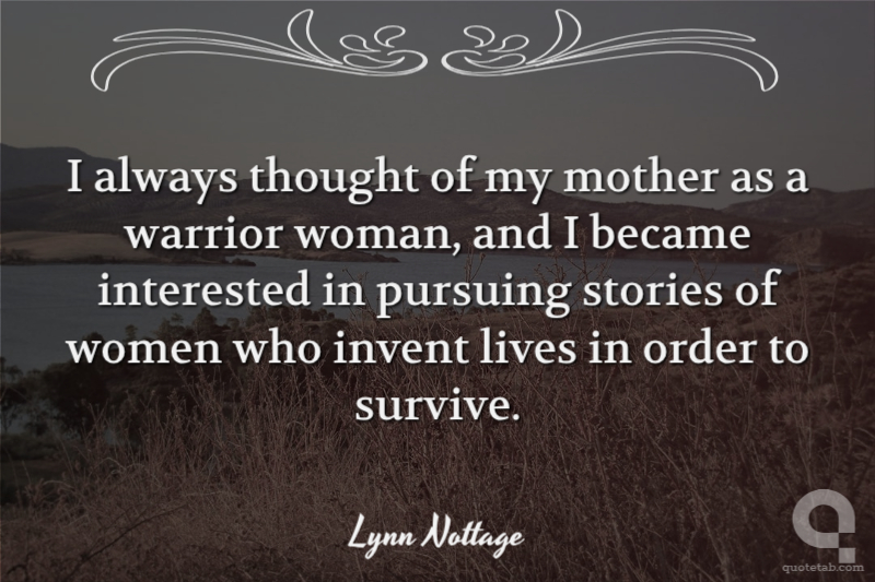 I always thought of my mother as a warrior woman, and I became interested in pursuing stories of women who invent lives in order to survive.