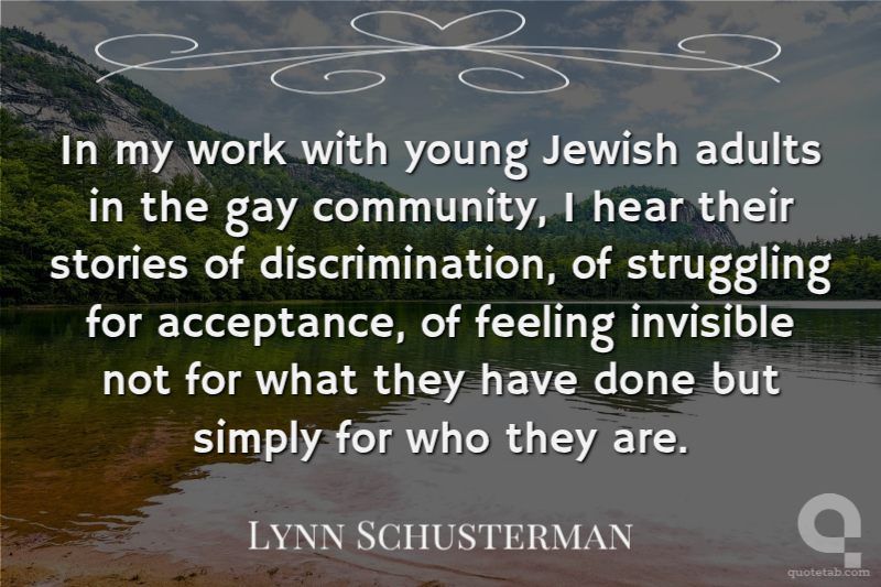 In my work with young Jewish adults in the gay community, I hear their stories of discrimination, of struggling for acceptance, of feeling invisible not for what they have done but simply for who they are.