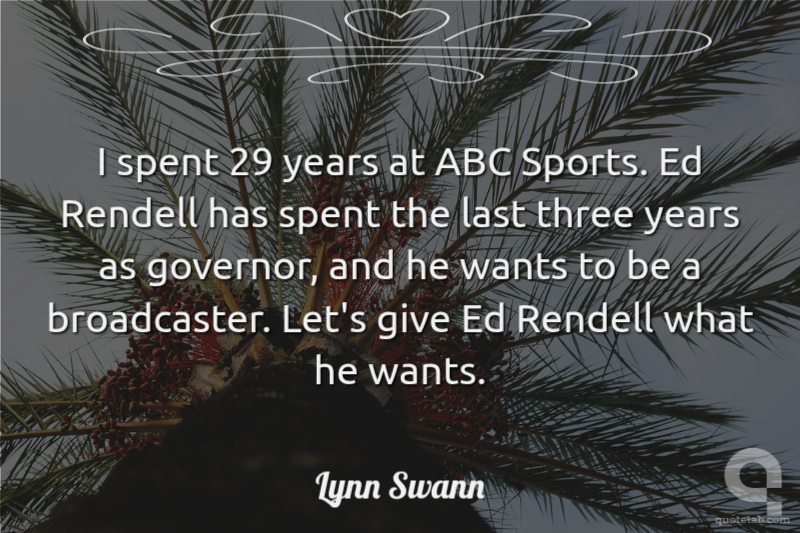 I spent 29 years at ABC Sports. Ed Rendell has spent the last three years as governor, and he wants to be a broadcaster. Let's give Ed Rendell what he wants.