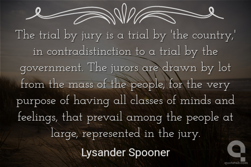 The trial by jury is a trial by 'the country,' in contradistinction to a trial by the government. The jurors are drawn by lot from the mass of the people, for the very purpose of having all classes of minds and feelings, that prevail among the people at large, represented in the jury.