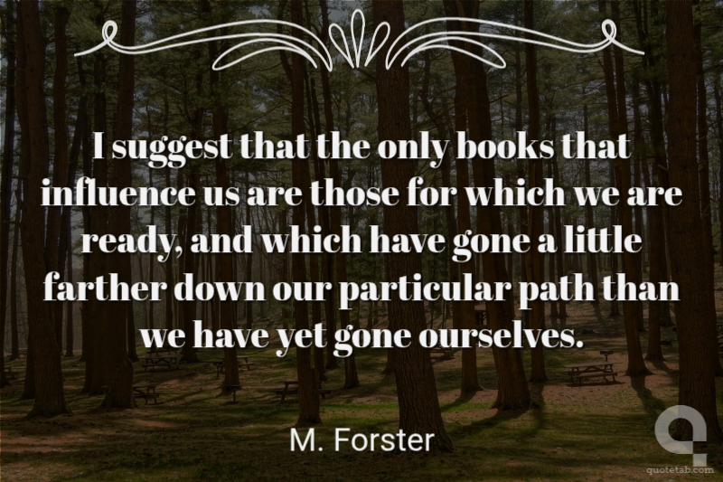 I suggest that the only books that influence us are those for which we are ready, and which have gone a little farther down our particular path than we have yet gone ourselves.