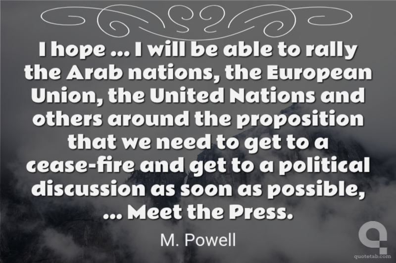 I hope ... I will be able to rally the Arab nations, the European Union, the United Nations and others around the proposition that we need to get to a cease-fire and get to a political discussion as soon as possible, ... Meet the Press.