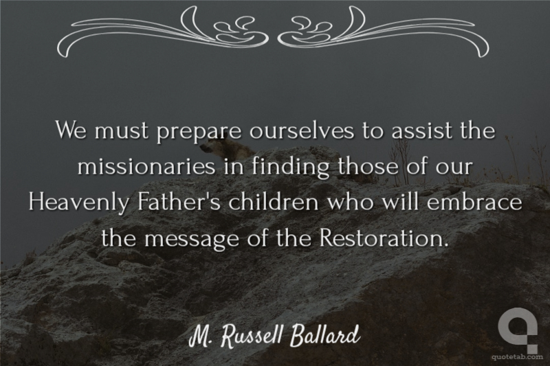 We must prepare ourselves to assist the missionaries in finding those of our Heavenly Father's children who will embrace the message of the Restoration.