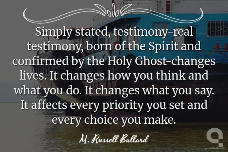 Simply stated, testimony-real testimony, born of the Spirit and confirmed by the Holy Ghost-changes lives. It changes how you think and what you do. It changes what you say. It affects every priority you set and every choice you make.
