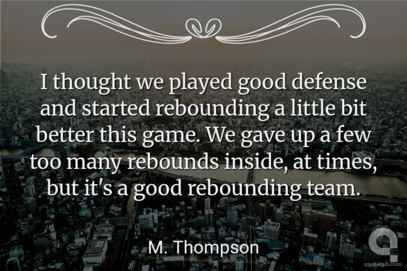 I thought we played good defense and started rebounding a little bit better this game. We gave up a few too many rebounds inside, at times, but it's a good rebounding team.