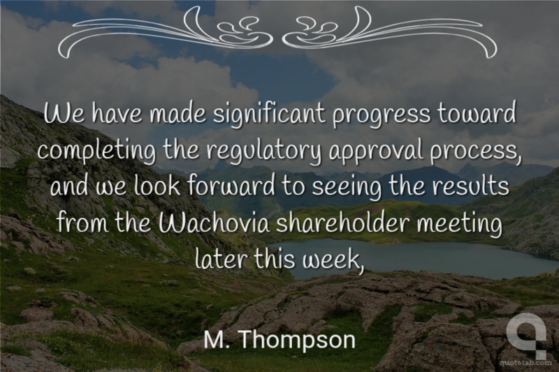 We have made significant progress toward completing the regulatory approval process, and we look forward to seeing the results from the Wachovia shareholder meeting later this week,