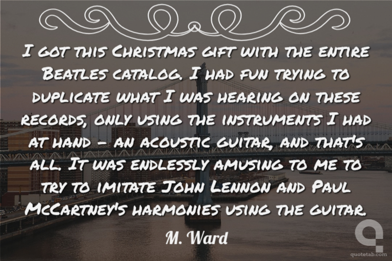 Matthew Stephen "M" Wardis a singer-songwriter and guitarist from Portland, Oregon. Ward's solo work is mixture of folk and blues-inspired Americana analog recordings, releasing eight albums since 1999, primarily through independent label Merge Records. In addition to his solo work, he is a member of pop duo She & Him and folk-rock supergroup Monsters of Folk, as well as participating in the recording, producing, and playing with multiple other artists...